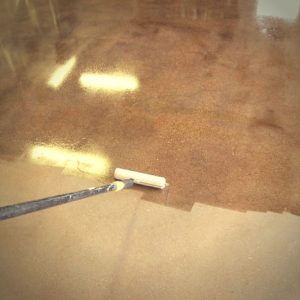 Before sealing you have to clean the floor because it has to be free of dirt, grease and oil. To do this you should use a stiff scrub brush to apply the cleaner and concrete degreaser according to the instructions. Allow the solution to lay on the floor for 15 to 20 minutes more for stubborn stains after scrubbing. After this you should rinse thoroughly with clear water. You may need several applications. Many concrete sealers contain hazardous chemicals that may be harmful to skin and eyes and the vapors are not safe to breathe but the vast majority are acrylic.